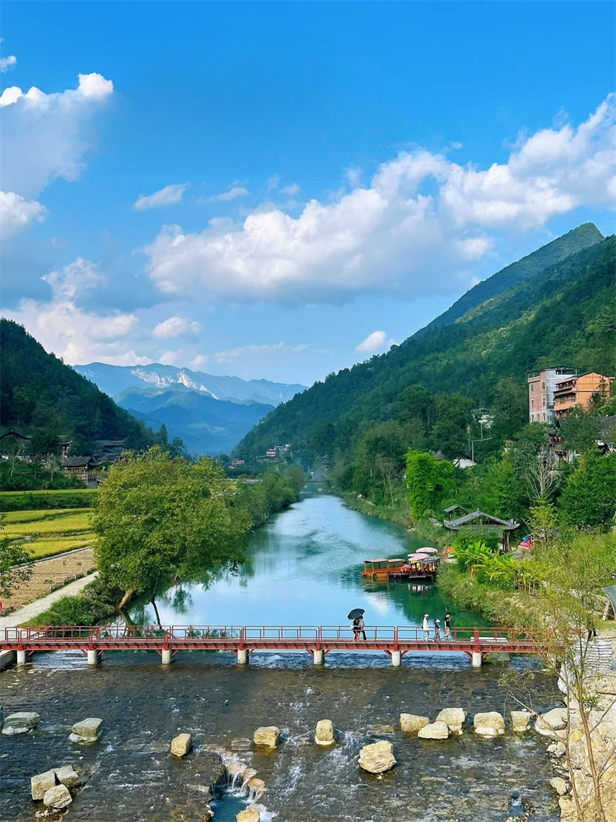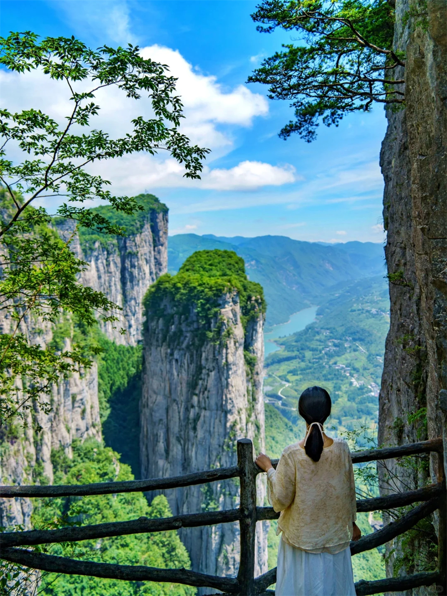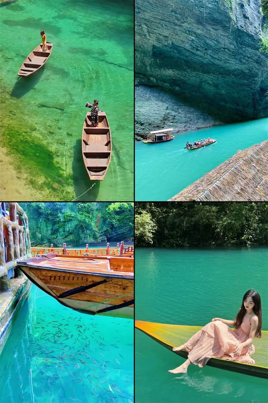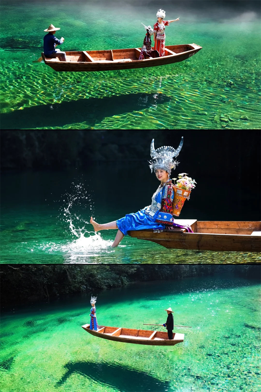 清澈见底的水面上,船行上面尤如飘浮空中。水面犹如天空的镜子,仿佛漂浮在二次元的世界......这样的奇景,可能你没见过,但是你应该看过下面的风景:为了让你有一个更好的体验,我们还为您准备了两套土家族传统服饰~