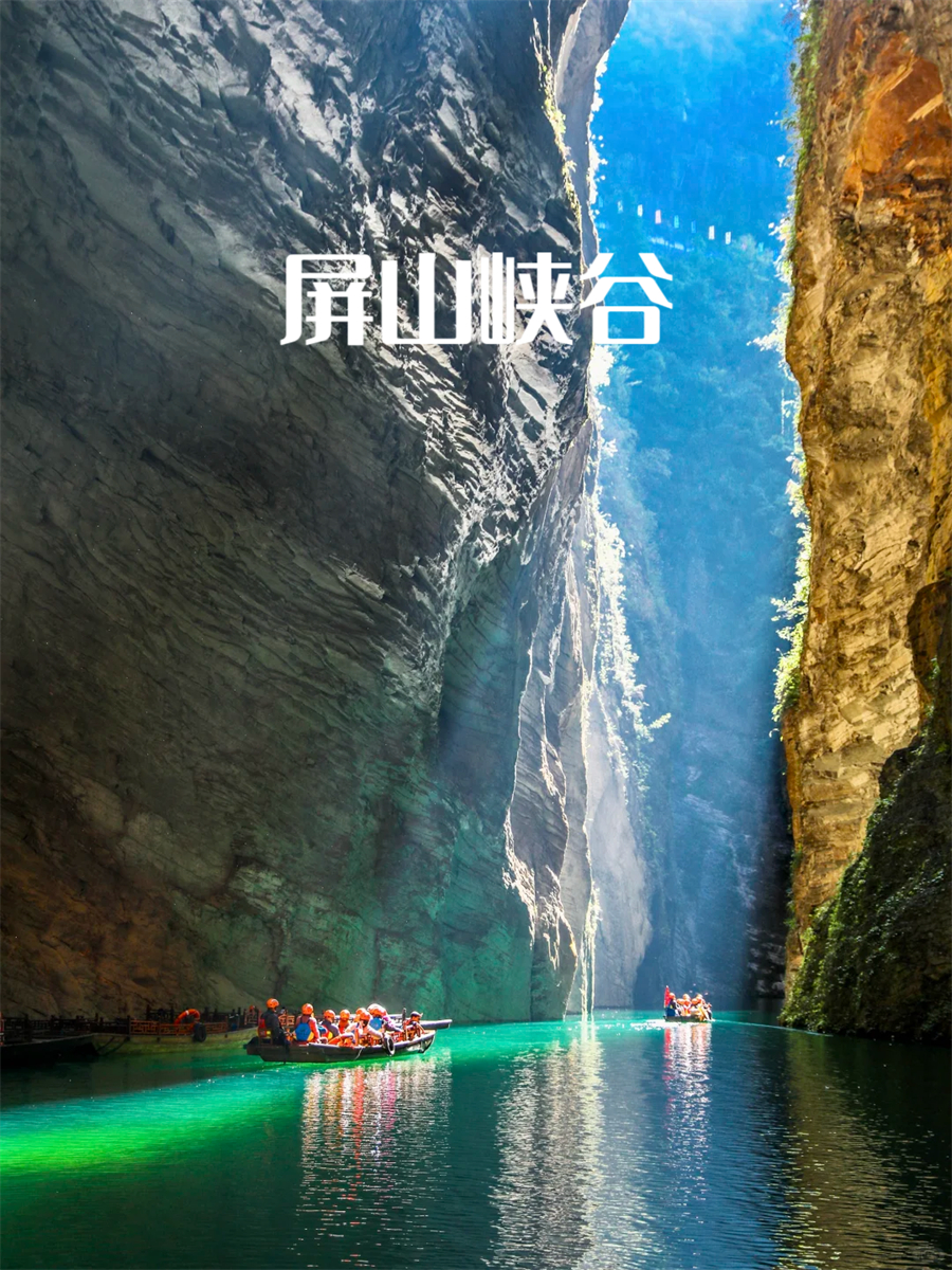 屏山峡谷深达百余丈,宽不足六七丈,全长18公里,峡谷两岸皆为斧斫刀劈般的百丈绝壁。清朝诗人顾彩游历容美,由大力士背负上屏山。他在诗中叹道:“蜀道难,其难未必如屏山!”如今,尚处于原生态保护之中的屏山,空气清新,河水清澈,只在前来探秘的摄影者的镜头里,被掀开一角神秘的面纱。你划船在清澈见底的河上,船行上面犹如飘浮空中,身处“太空舱之境”无法自拔。