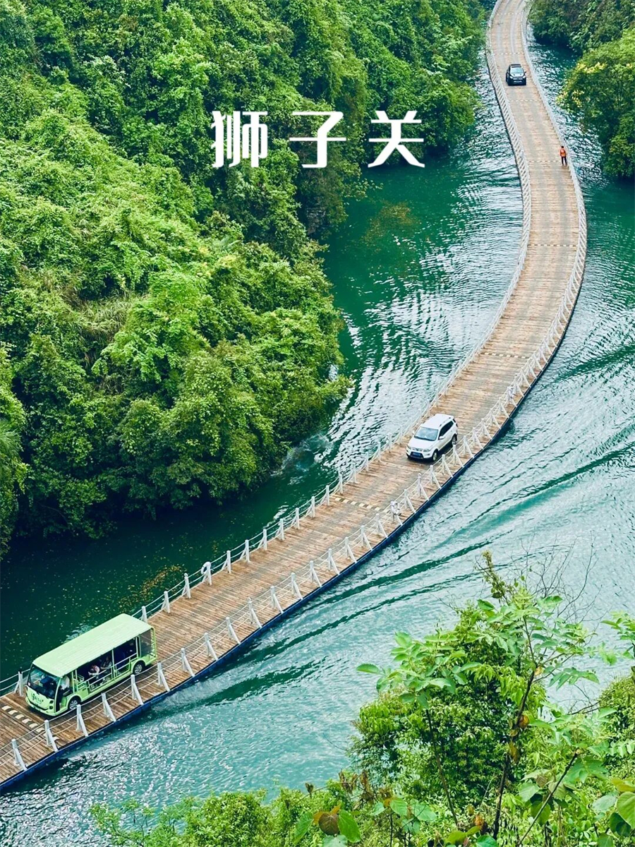 狮子关位于湖北省恩施土家族苗族自治州宣恩县,是宣恩古三关(狮子关、东门关、烂泥关)之一,以险峻的峡谷风光和独特的喀斯特地貌闻名。这里因一座横跨水面的“网红浮桥”(廊桥遗梦)走红,成为恩施小众旅行地中的热门打卡点。