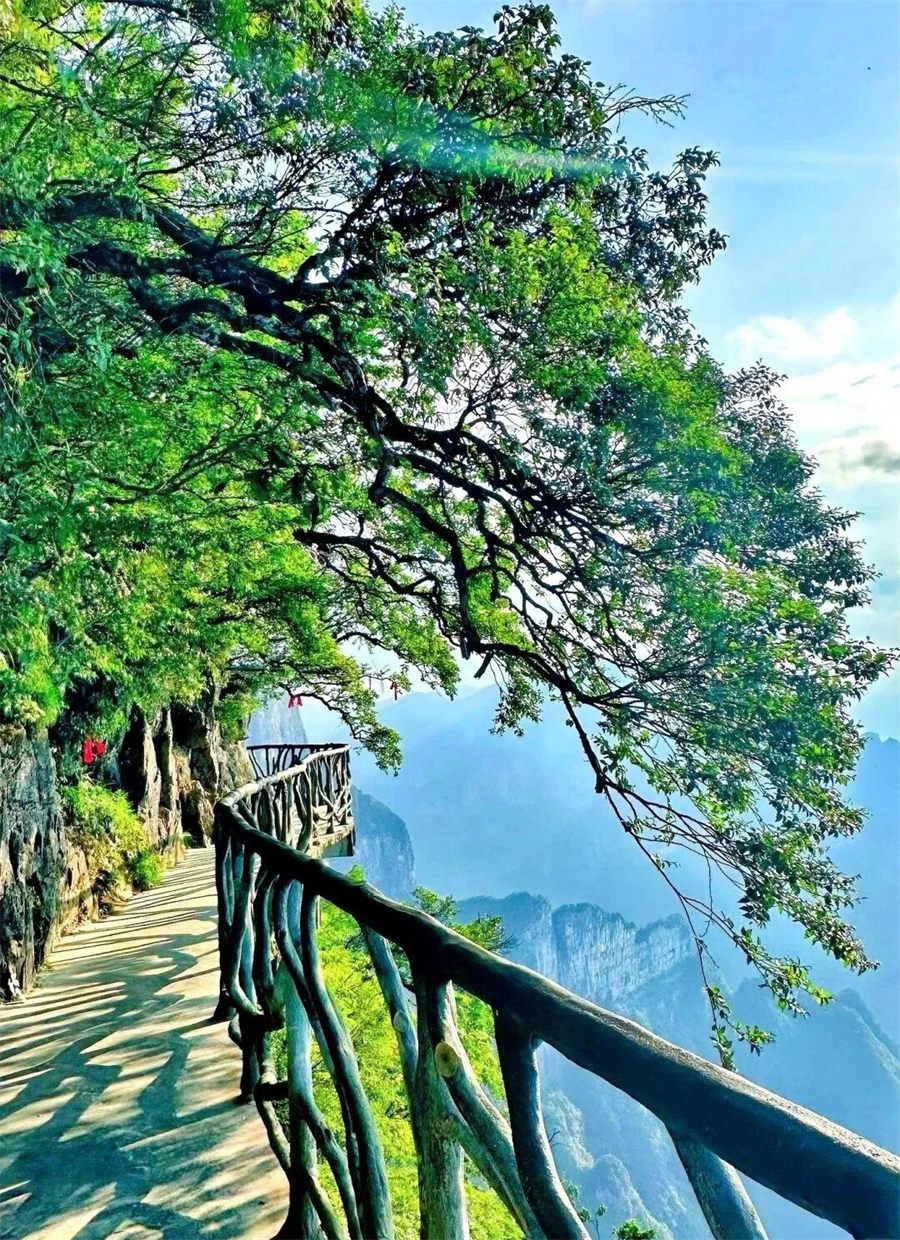 天门山是一座仿佛从神话中走来的仙山。乘坐世界最长的高山客运索道,缓缓上升,如在云端漫步。天门洞,大自然的鬼斧神工之作。巨大的洞口仿佛通往神秘的异世界,站在洞下,感受着风从洞中呼啸而过,心中满是敬畏与惊叹。阳光洒下,仿佛一道神圣的光芒,让人沉醉其中。