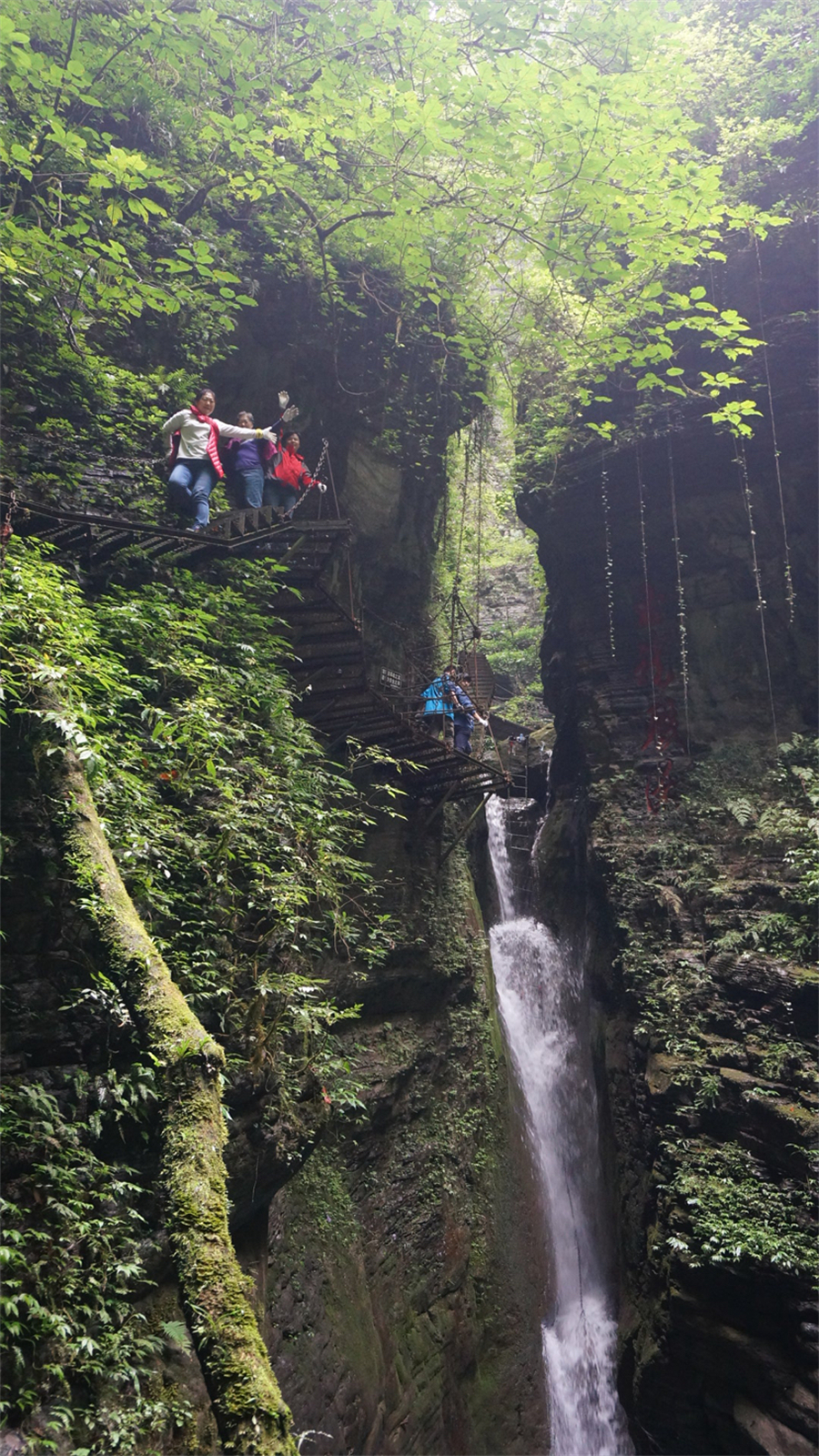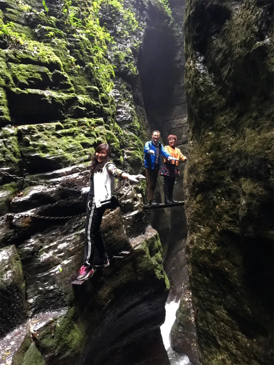 坐龙峡全程铁链钻进深山峡谷!湘西坐龙峡真的要去,悬崖绝壁之间的特种游道,从山脚下沿着峡谷深处攀登,近乎 90度的索道,太刺激了 几乎仅靠脚踩钢钉,手扶铁链一步步向上爬,手脚并用,一步一景,越往深处走,清澈见底的绿色潭水,从头顶飞落的瀑布,你永远不知道转角会有怎样的景色,整个景区很原生态,没有过度开发的样子,那种探索的感觉反而很吸引人!
