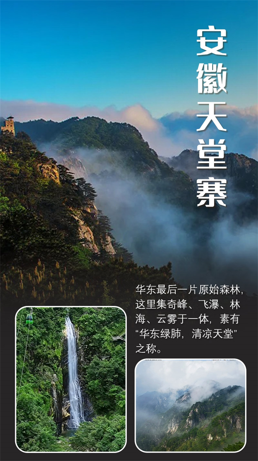 千里大别山,仙境天堂寨。这枚藏匿于大别山的翡翠,森林覆盖率高达98%,保留了华东的最后一片原始森林,也是中国最具影响力的国家森林公园之一。天堂寨也是国家5A级旅游景区。天堂寨古称“多云山”,最高峰海拔1729.13米,为大别山主峰之一,古称“吴楚东南第一关”,景区内有大小瀑布108道,其中落差达50米以上的18道。天堂寨所处的大别山,是中国南北水系的分水岭,山北水往北流注入淮河,山南水往南流注入长江。所以在天堂寨峰顶北可望中原,南可眺荆楚,海拔1729米的天堂顶有一口天塘,塘水不溢不涸,俗称“瑶池”。景区总面积120平方公里,境内千米以上的高峰25座,天堂寨最高峰为大别山主峰之一。