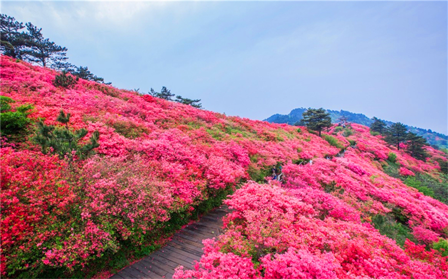 “闲折两枝持在手,细看不似人间有。花中此物似西施,芙蓉芍药皆嫫母。”这是唐代白居易吟咏杜鹃花的诗句,将之比作西施,可见其美。在全国各地,可赏杜鹃花(又名映山红)的地方不少,不过有一处地方,尚养在深闺少人识,那就是拥有被上海大世界基尼斯纪录大全命名为“中国面积最大古杜鹃群”的麻城。龟峰山风景区位于大别山中段,距麻城市21公里。龟峰山全长16公里,最高峰海拔1320米,区内山势险峻,云雾缭绕,有如仙境。因其地形山势酷似一只昂首吞日的神龟而得名“龟山”,是大别山中的名山。