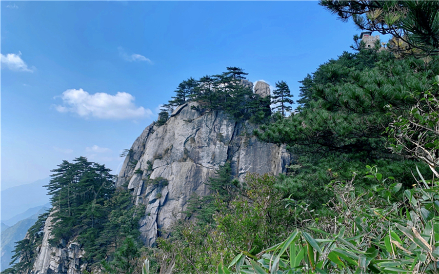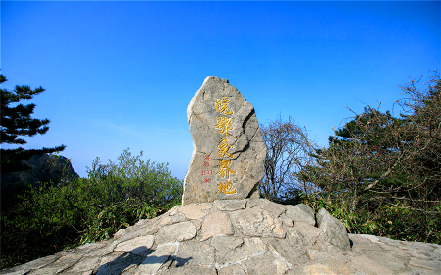 3.天屏峰景区:到海拔1605米的天屏峰景区、看看江淮分水岭、鄂皖交界地、石佛、马头峰、骆驼峰、鲸鱼出海、金狮啸天、五龙朝天、梦笔生花、剪刀石、白象戏水、情侣峰等