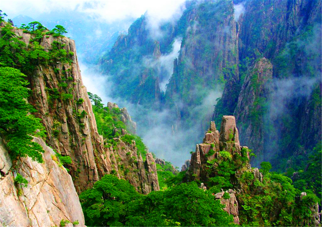 黄山,位于安徽省南部的黄山市境内。黄山风景区东邻浙江,南连江西,北与宣城、池州两市接壤,是长江与钱塘江两大水系的分水岭,也是安徽省最著名的的旅游风景区。奇松、怪石、云海、温泉、冬雪是黄山最为人津津乐道的“五绝”。