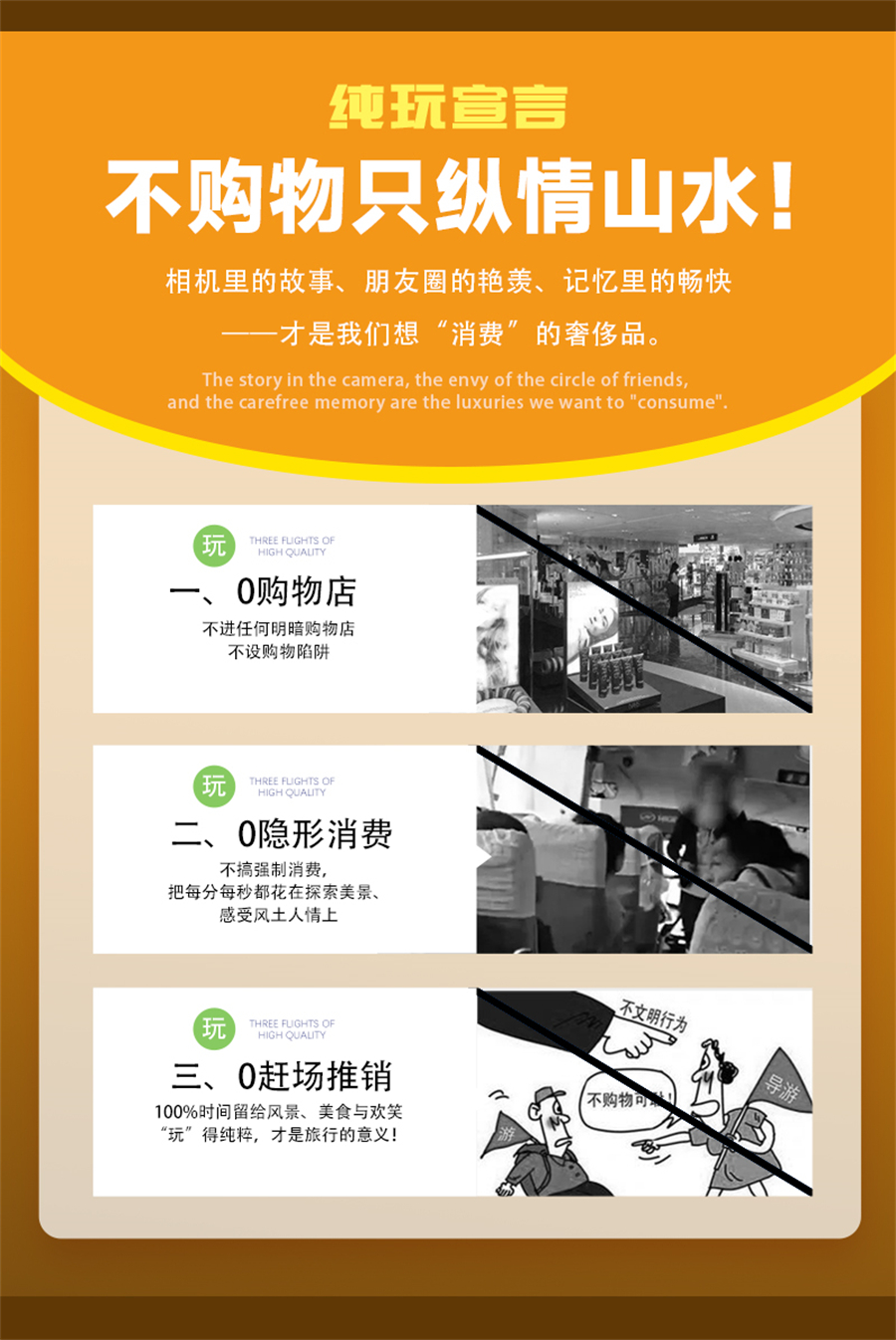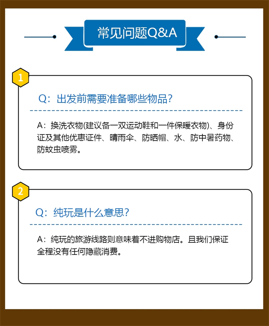 *本活动属于半自助游户外活动,领队安排行程不含景区内导游讲解,费用包含以外的自主费用自理;本团为纯玩团,全程不进购物店,没有任何形式购物环节,行程中也不留购物时间,敬请谅解。