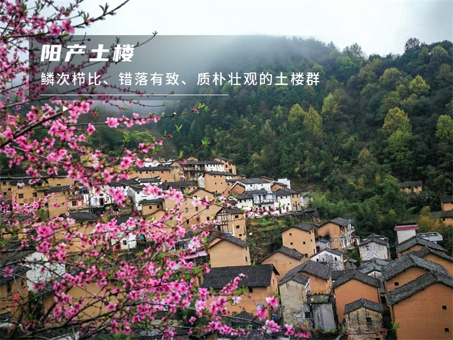 阳产土楼位于皖南山区的深渡镇。阳产,位于皖南山区的群山之中,是一个依山而筑的小山寨。这里由于地势高,交通不便,数百年来,山民就地取材,采周边青石铺路架桥,取红壤木材筑巢而居,日出而作,日入而息,渴饮山泉,饿食五谷,子孙延续。流年之中,形成了鳞次栉比、错落有致、质朴壮观的土楼群。