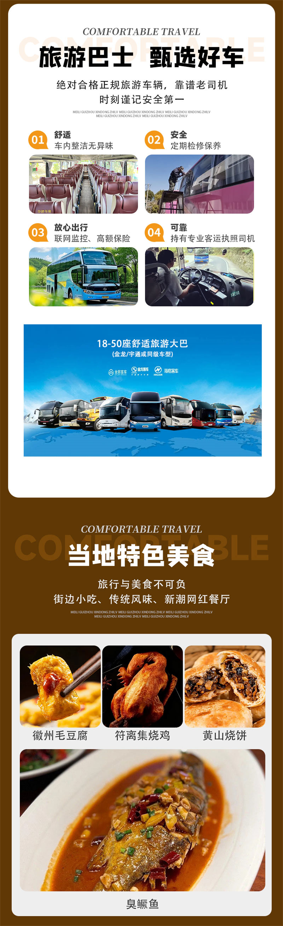2、车上座位顺序为集合时先到的先坐,发车之后保持原车原座(有老年人、晕车等情况的领队将酌情调整);