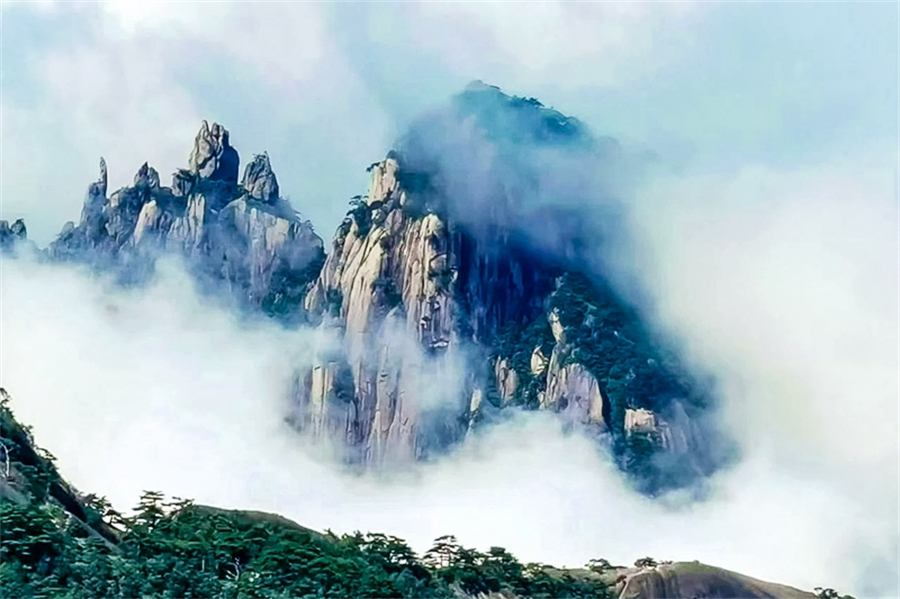 主峰:主峰为莲花峰海拔1864.8米,与光明顶、天都峰并称三大黄山主峰。