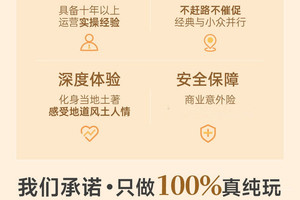 *本活动属于半自助游户外活动,领队安排行程不含景区内导游讲解,费用包含以外的自主费用自理;本团为纯玩团,全程不进购物店,没有任何形式购物环节,行程中也不留购物时间,敬请谅解。