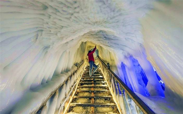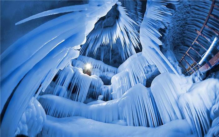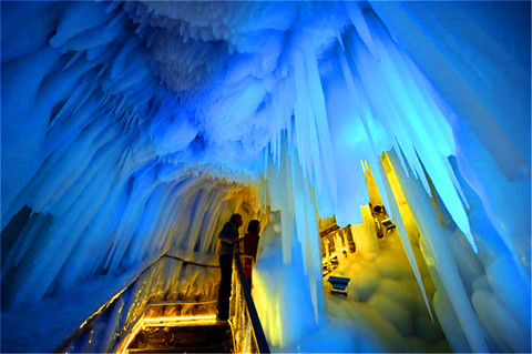 万年冰洞无论洞外季节如何变化,洞内都是一派寒气逼人。开发后的冰洞可让游客进入到100米深的地下,完全置身于冰的世界里。此洞形成于300多万年前的新生代第四季冰川期,是我国迄今发现大的冰洞.和钟乳洞类似,有着【冰花】、【冰瀑】、【冰挂】、【冰柱】、【冰笋】等,惟妙惟肖,冰清玉洁,在各种灯光的映衬下色彩斑斓,无不令人惊叹。