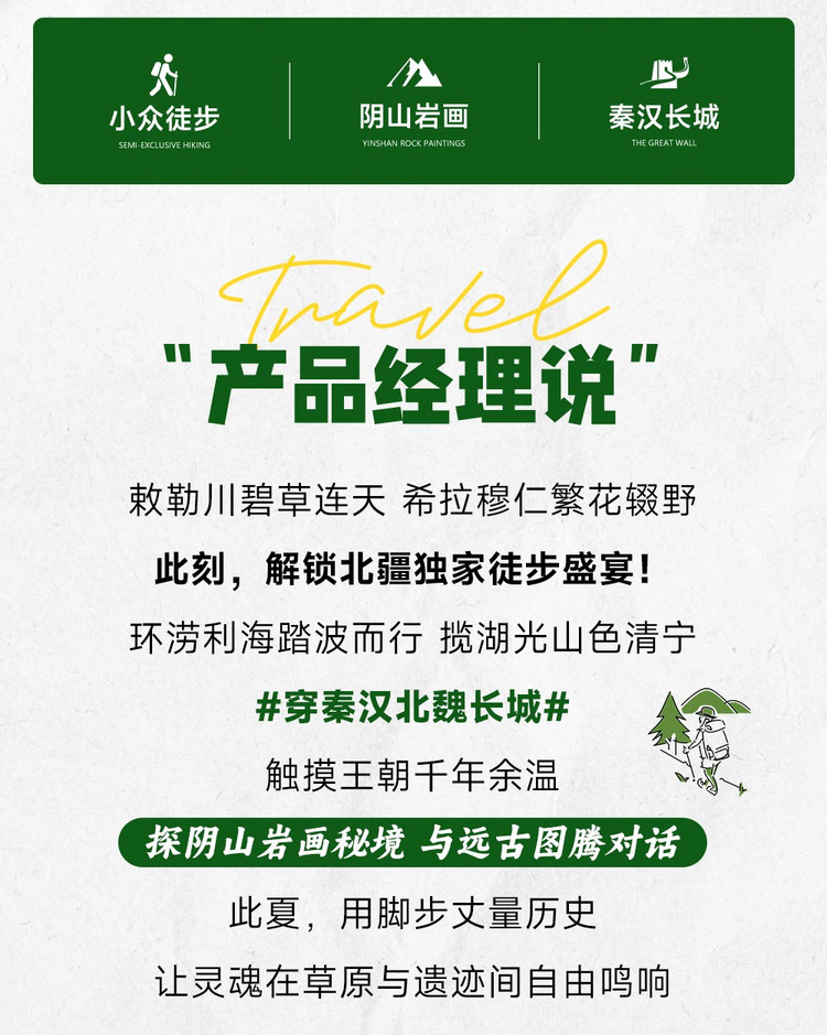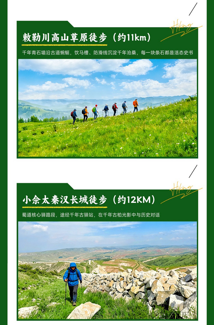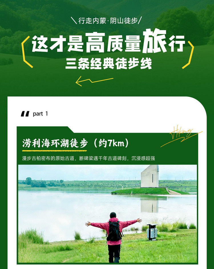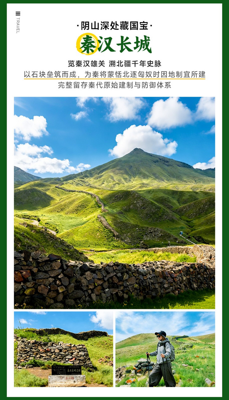 【活动地点】阴山徒步|7km涝沥海环湖徒步+11km敕勒川高山草原徒步+12km小佘太秦汉长城+探寻北魏遗址+38人小团