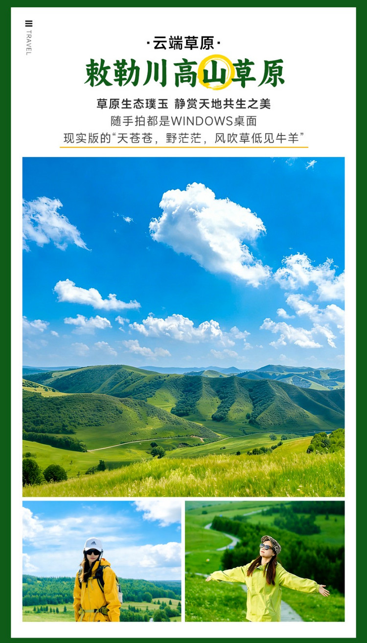敕勒川高山草原徒步:全程约11公里,往返路线,累计爬升下降约350米,预计徒步时间4小时,为休闲难度。