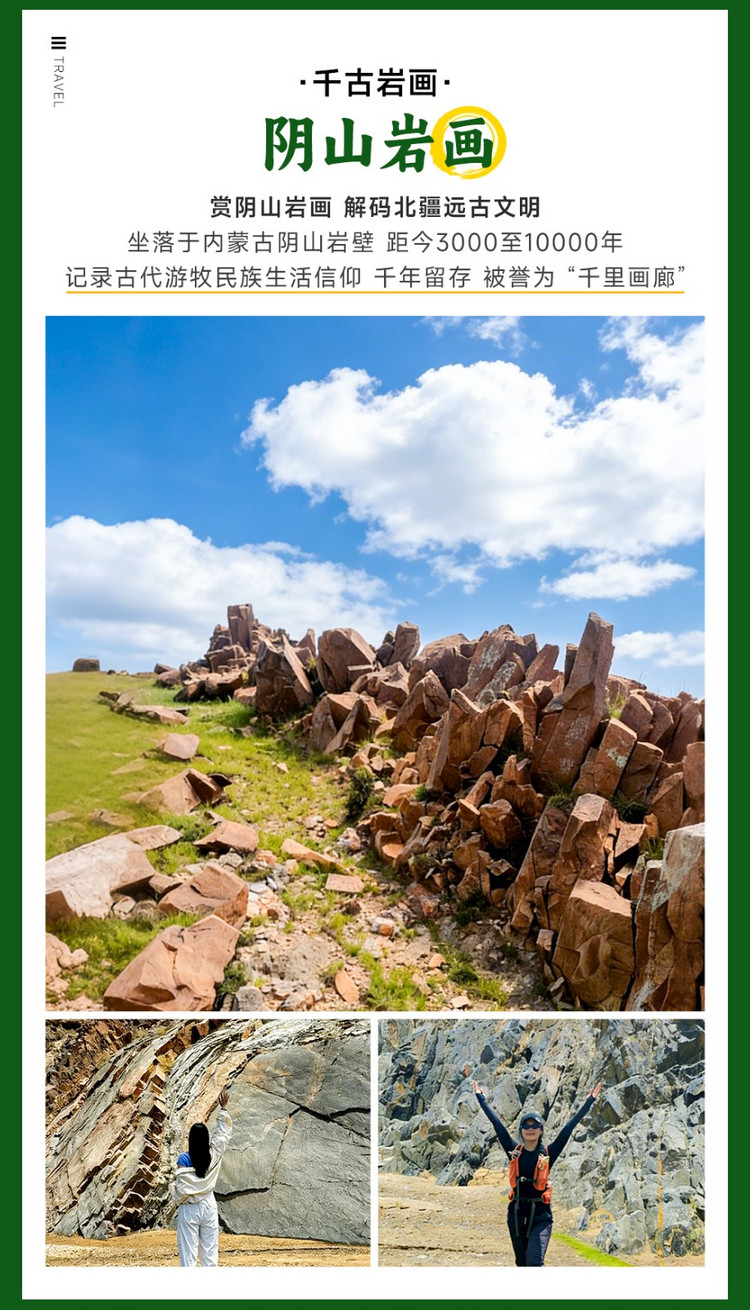 黑色石垒与红色岩画并行西延,宛如两条巨龙在阴山舞动,一边是中原王朝的防御史诗,一边是草原文明的生活印记,无声诉说着 “隔城相望却终融共生” 的千年往事。