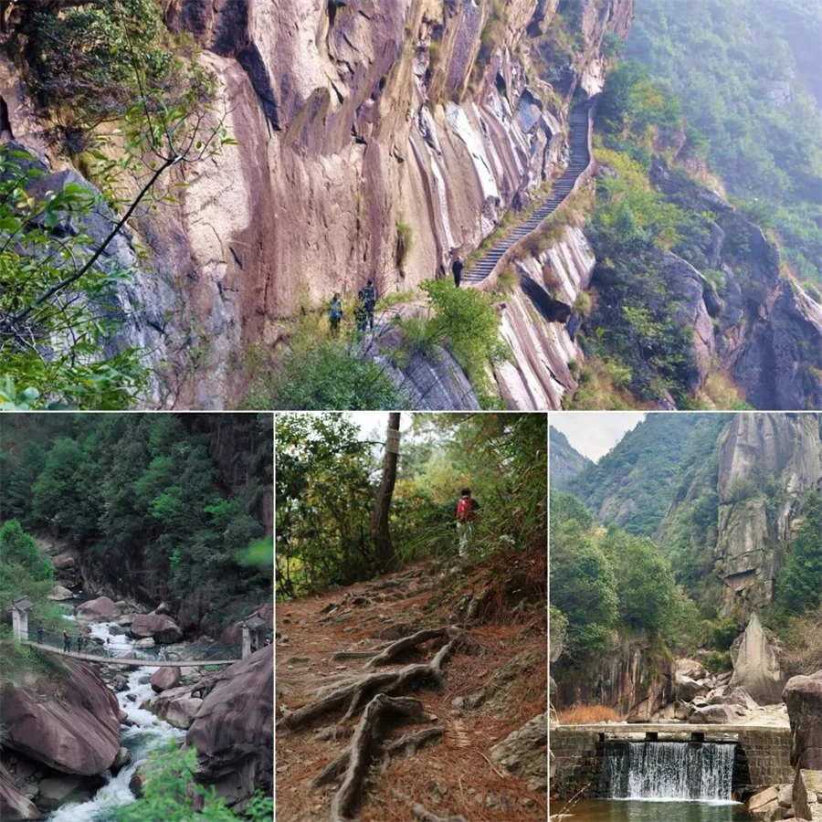 微杭古道建于唐已经历1000多年历史,是丝绸之路 茶马古道之后第三条著名古道,特适合徒步新手 全程14公里山路 累计爬升约400米,一路崇山峻岭、古道盘旋、溪水瀑布、险峻的山体、柔软的小草原 在这里最让人震撼的是万丈悬崖上凿出的石板栈道,向下看去气势恢宏。