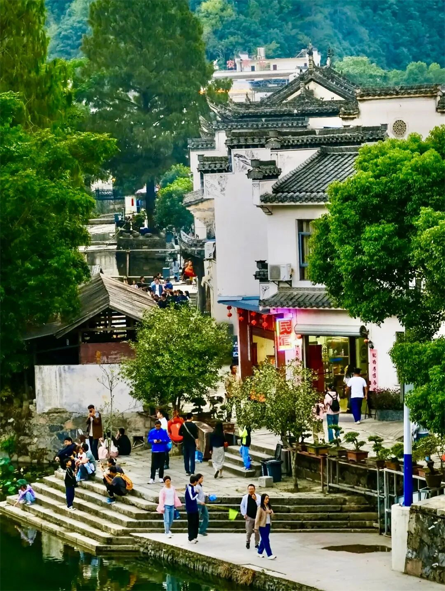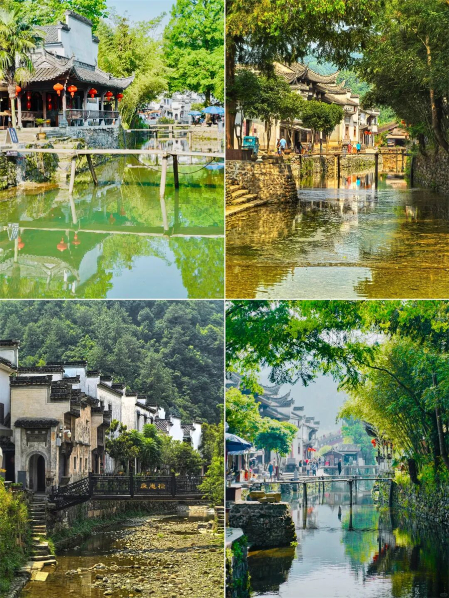 🔷龙川水街两岸是传统徽派建筑群—宗祠、牌坊、名人故居保存完好,差不多2小时就能走完。
