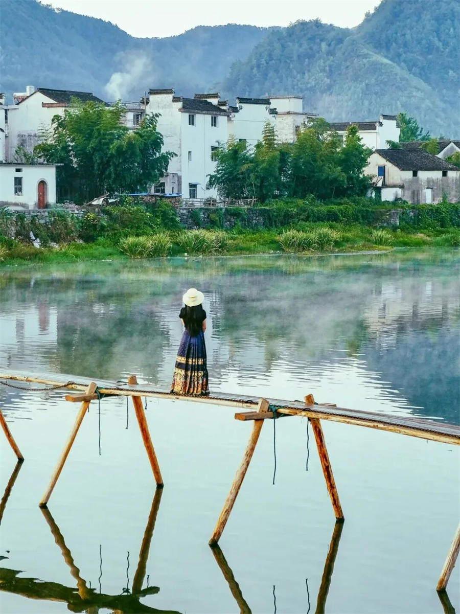 绩溪龙川一个藏在水墨画中的千年古村落,穿梭在徽派古镇的石板小巷中,仿佛步入了古老的时光隧道,水街两岸,古民居鳞次栉比,村巷幽幽、粉墙黛瓦,一派徽州古村落意蕴,古镇的街角,随处可见悠闲散步的老人,古桥之上,河水潺潺,映照着斑驳的光影,逛完村子,可以沿着村子外围的河边走走,烟雨江南、独木廊桥,才是龙川的精华美景;
