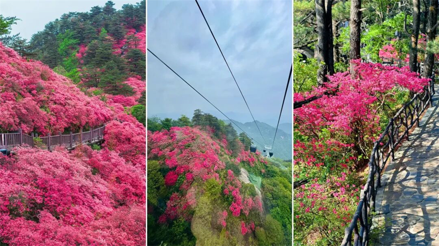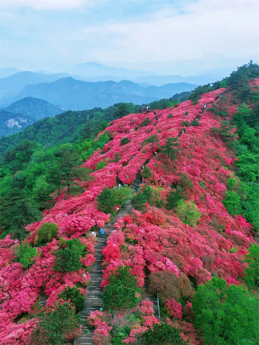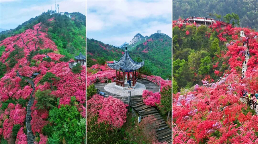 早餐后出发前往【龟峰山】,因其地形山势酷似一只昂首吞日的神龟而得名“龟山”,它也是大别山中的名山之一。那句“人间四月天,麻城看杜鹃”,便是指的这里了。大别山上红飘带“ 古杜鹃群落”“北纬30度激荡人心的红色花海”,只有亲眼见过龟峰山上杜鹃花开如海的盛况才知道她担得起这些赞誉! 走在木栈道上,两侧花丛簇拥,随手一拍都是美景。