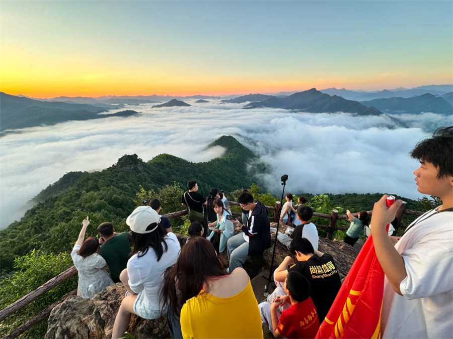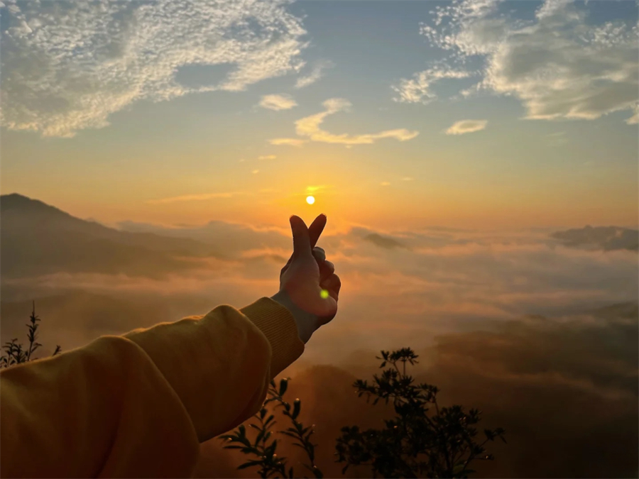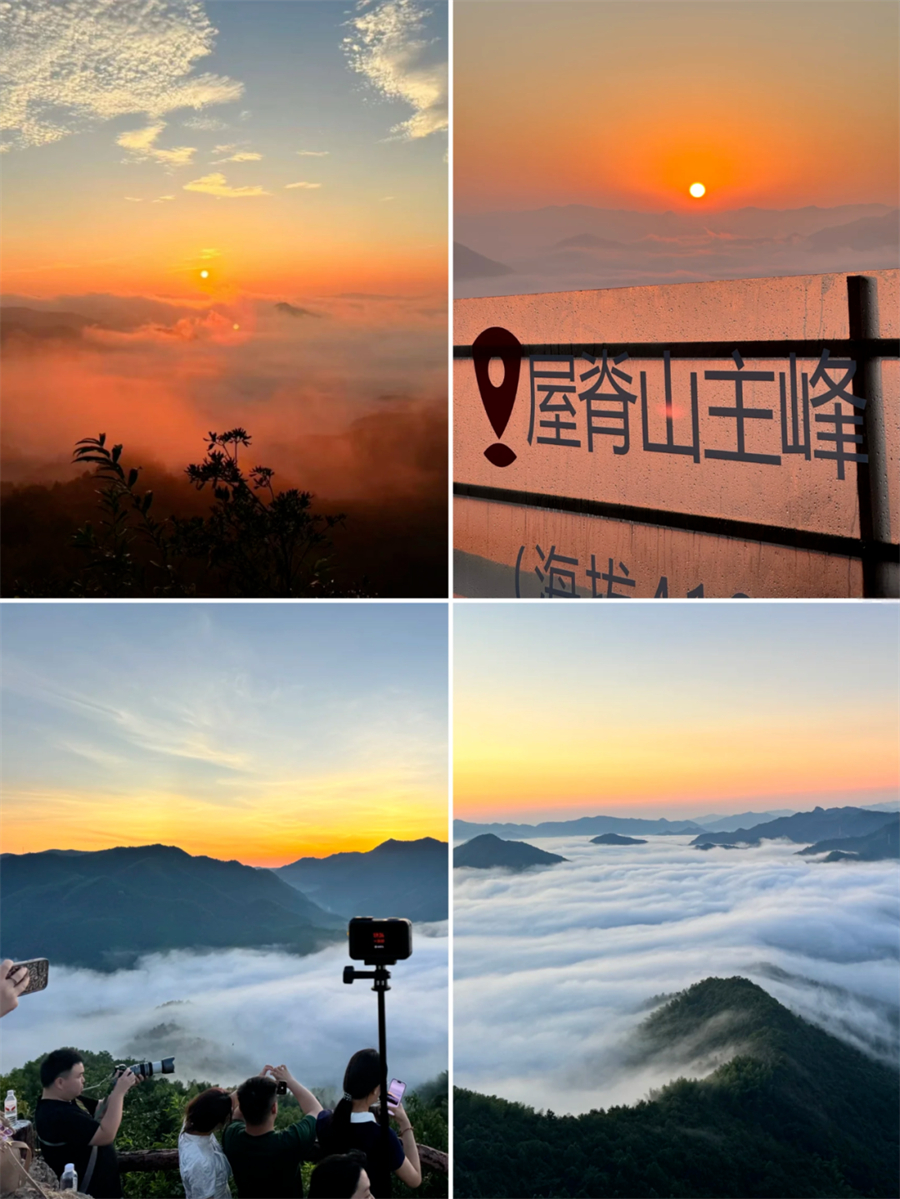 清晨起来,我们徒步来到【屋脊山观景台】看云海、观日出; 由于山脚下有水库,云海现象几乎每天都有。如梦如幻的云海,可以看到云海的翻滚、奔涌、群山、云海时隐时现,级目之处,气象万千,下山后回酒店早餐