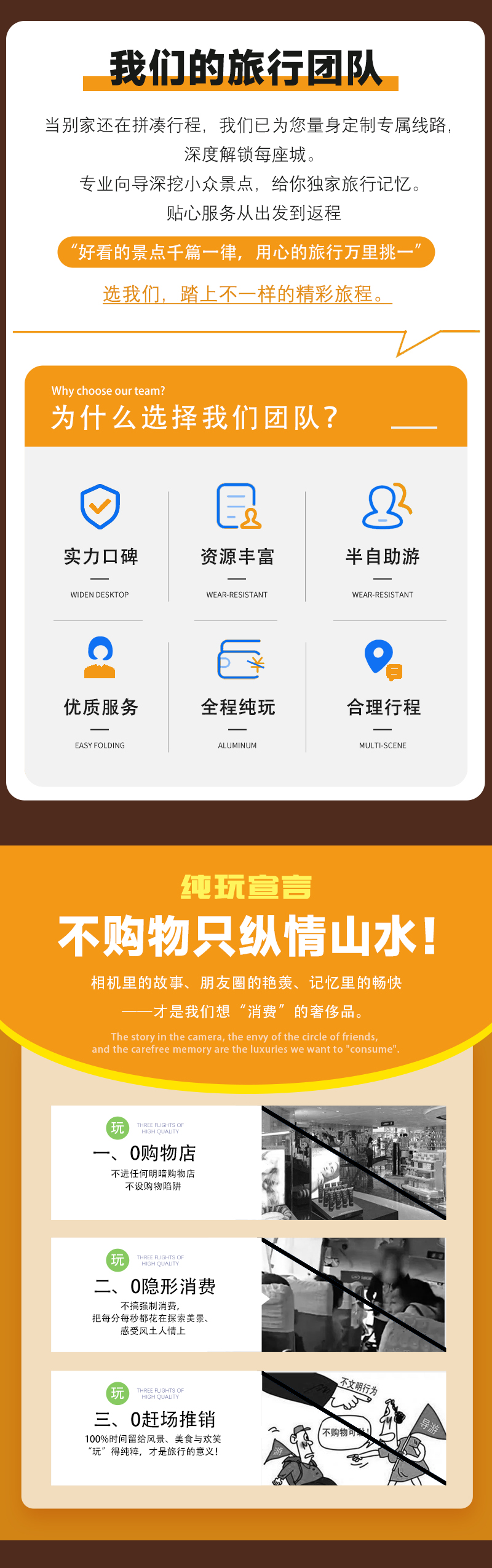3、成团说明:如因参团人数未达到发团人数则取消当期活动,活动出行前提前通知并全额退款,积极为游客推荐类似路线或拼团。