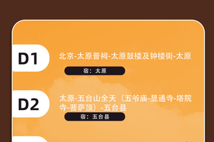 - 适时集合前往五台县入住酒店,晚上大家自由活动。