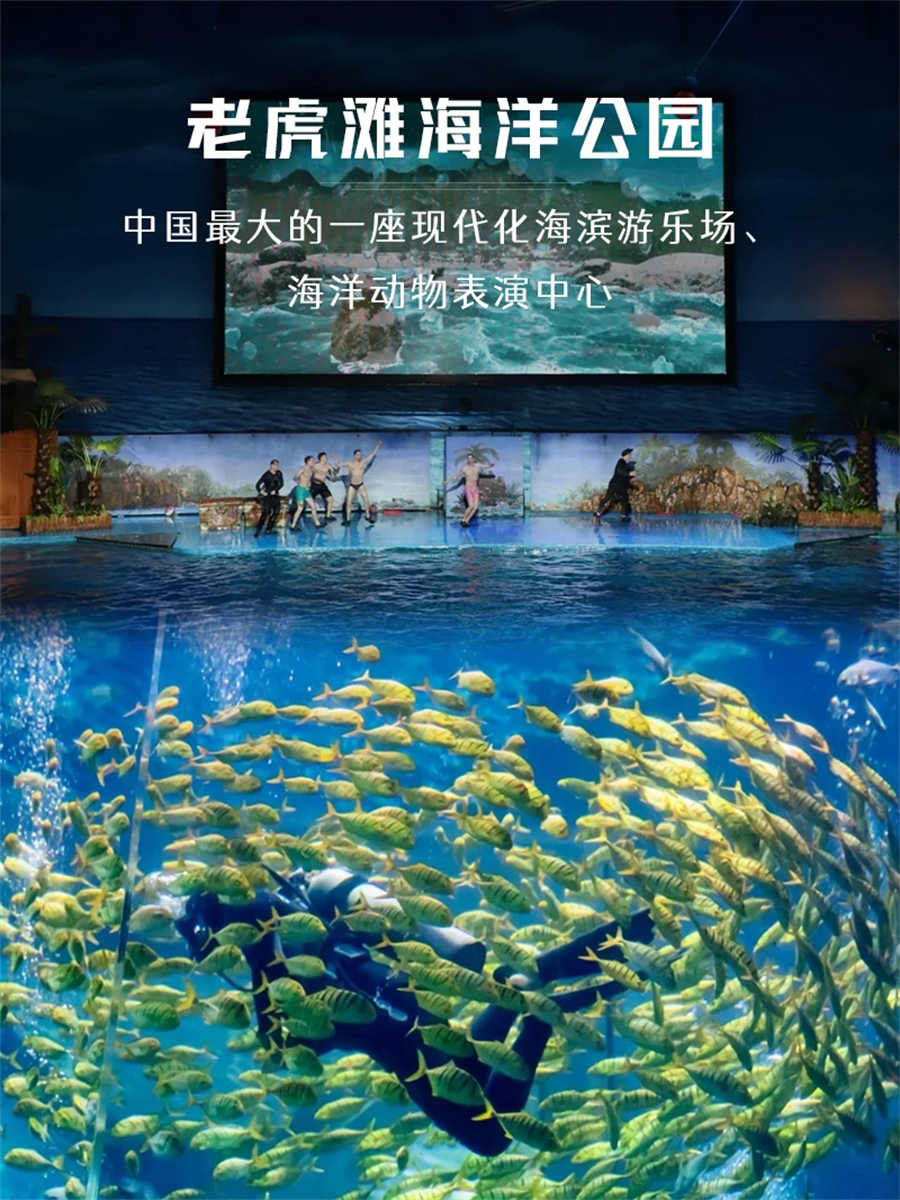 如您对老虎滩海洋公园不感兴趣可以自行前往附近的【渔人码头】【棒棰岛】游玩,渔人码头免费,棒棰岛门票40费用自理。游玩后自行前往东方水城与大部队汇合即可。