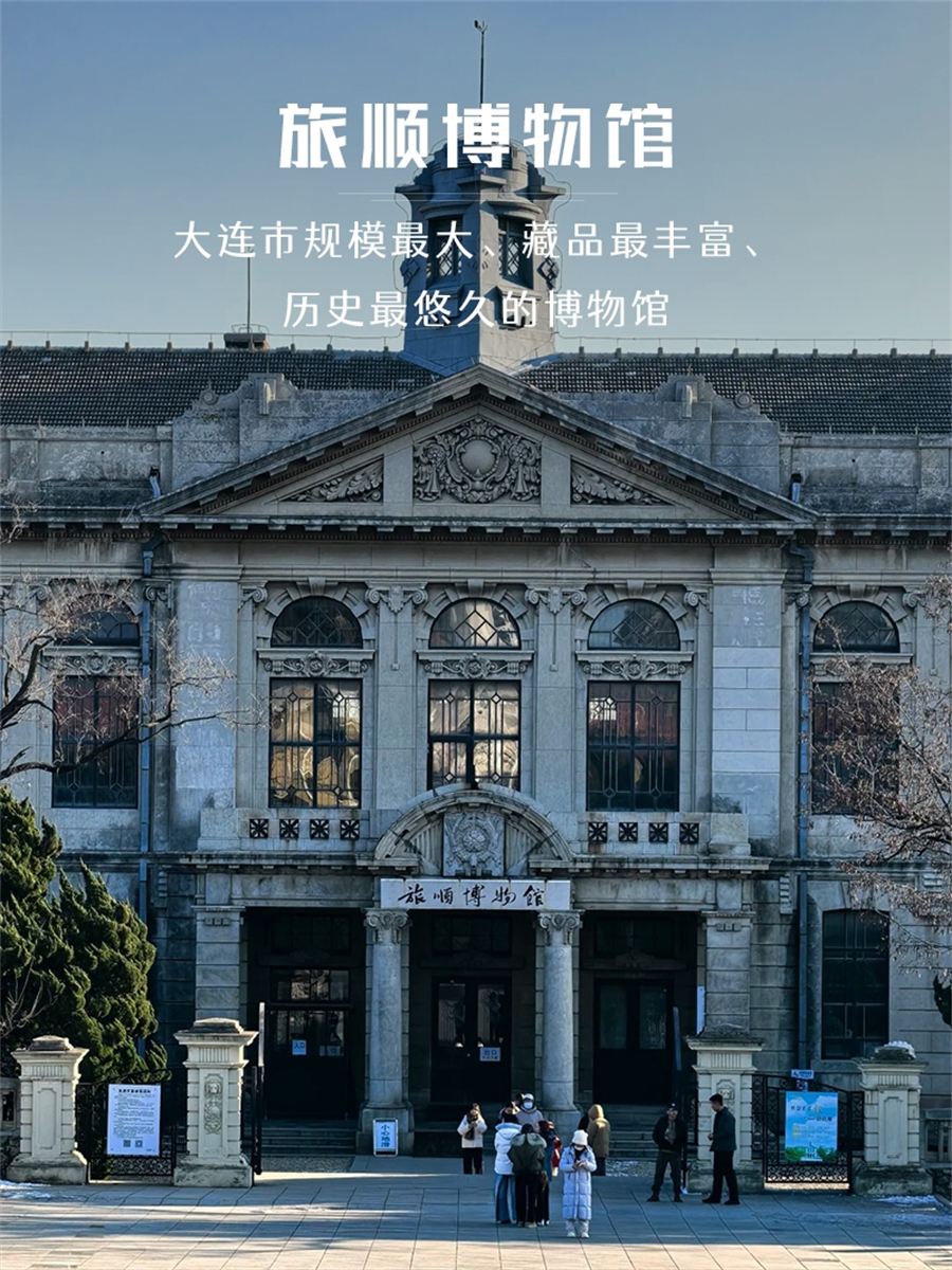 2. 旅顺博物馆需(约 1.5小时):国家一级博物馆,百年欧式建筑。馆藏 40 万余件文物,含青铜器、陶瓷、书画、佛教造像、新疆干尸等,珍贵文物 6 万余件。主馆为沙俄时期建筑,分馆展示日俄战争与旅顺近代史,免费需预约,自行提前预约。