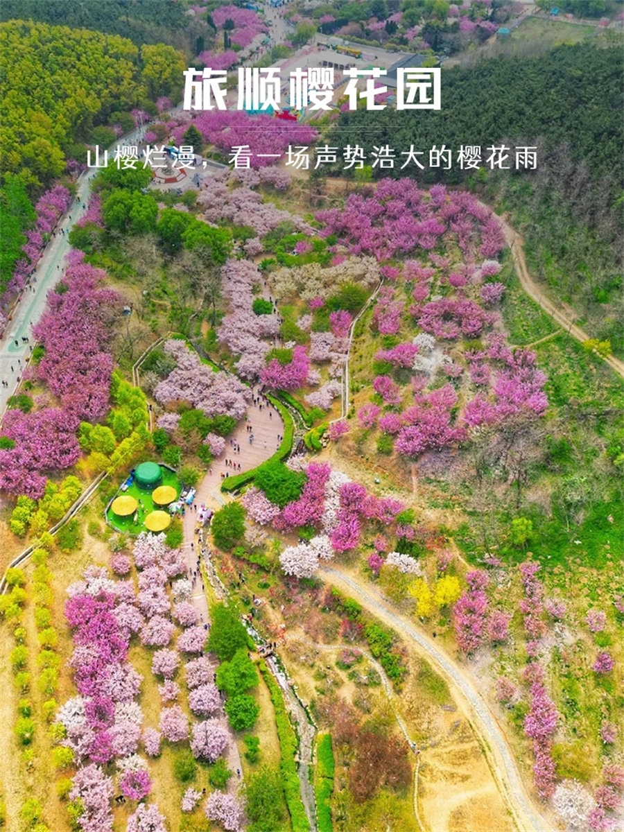 3. 旅顺樱花园(约 2 小时):4月底到5月初为盛花期,数千株樱花绽放,粉白如云。园内步道、天湖泊、亭台相映,可漫步樱花大道、拍照打卡,感受春日浪漫。随后前往大连排石奇观