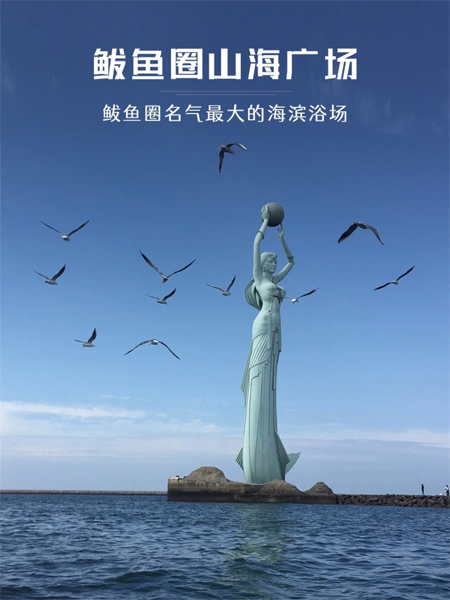 随后前往鲅鱼圈山海广场游玩。这里有鲅鱼公主、渤海明珠观景台、观海栈桥、月牙湾海边浴场等这是我们此行的最后一站,游览完毕后适时返京。