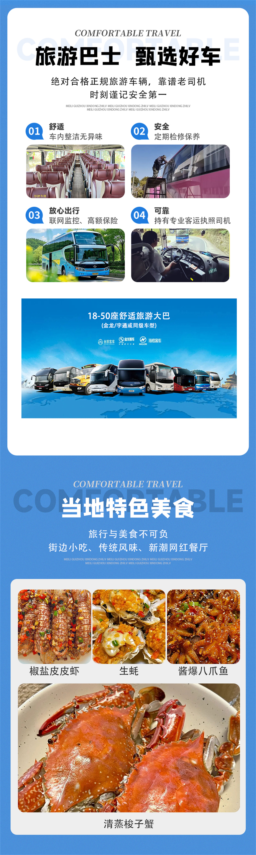 1)交通:往返空调巴士包车费用及司机食宿等费用(不含景区小交通);