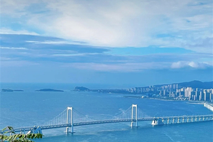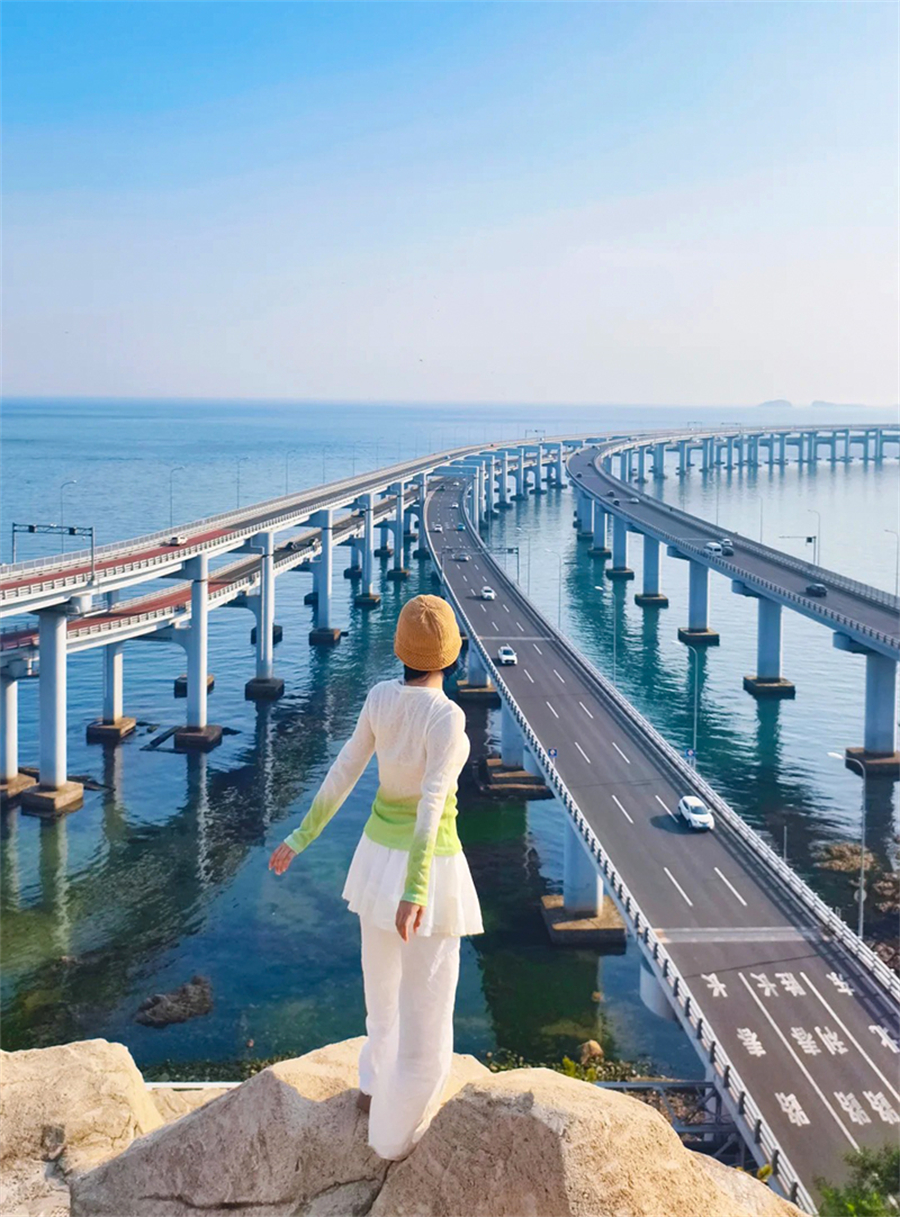 3、星海湾跨海大桥(约 1小时):中国首座海上双层悬索桥,全长约 6 公里,浅蓝桥身与海天相融。可在桥头观景台远观大桥雄姿,或步行 / 骑行专用步道,近距离感受海上大桥的壮阔。我们不用走完,往里走几百米即可,慢走、拍照、吹海风预计用时约1小时。