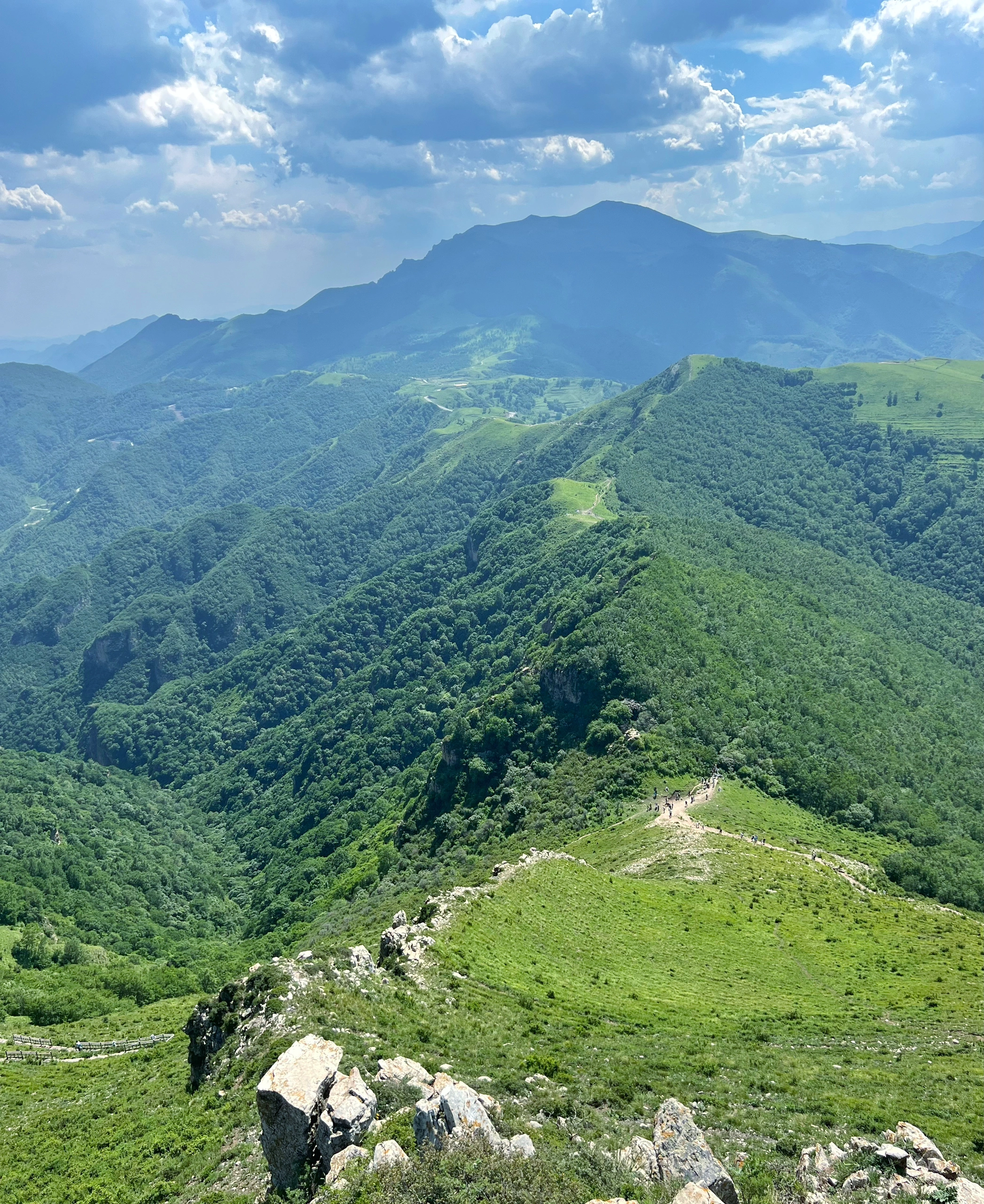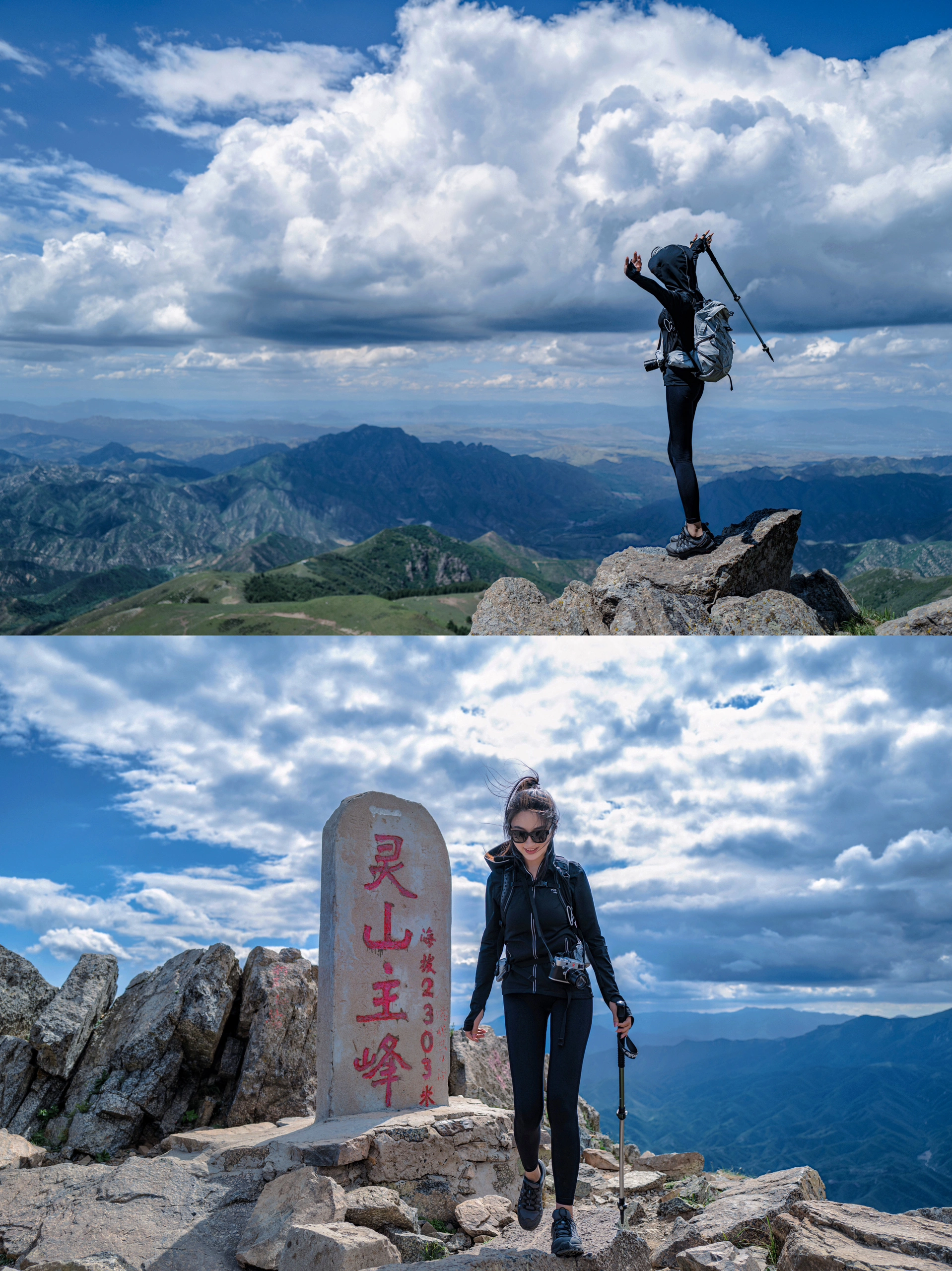 10:30|到达登山口,在领队带领下开始结伴爬山,一路登山赏景拍照,东灵山为北京市最高峰,海拔2303米,被誉为京西的“珠穆朗玛”,也是华北地区较高的山峦,地貌为以构造侵蚀为成因的高山地貌,山峰峻峭,谷深坡陡,山势雄伟,怪石嶙峋,有天然森林和亚高山草甸。该线路徒步距离适中,但爬升较大,对于体能要求就较高,此线路为定向野线,沿途无补几。