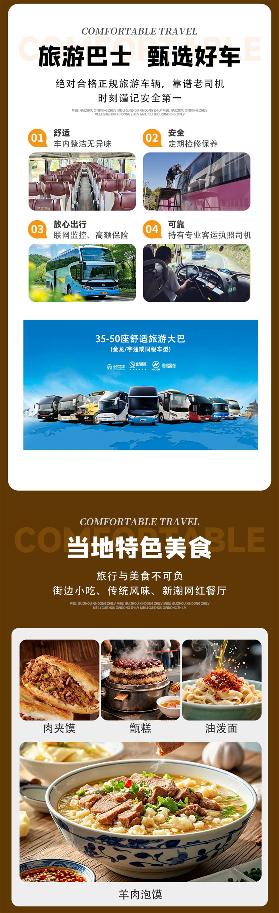 2、车上座位顺序为集合时先到的先坐,发车之后保持原车原座(有老年人、晕车等情况的领队将酌情调整);
