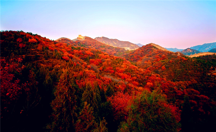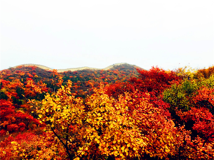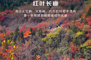 四、最近距离观赏红叶,游览轻松。漫山遍野的红叶不再是远看,而是零距离欣赏。这突破了在许多红叶景区游客只能远望观赏红叶的局限。您可漫步在残长城身侧,穿行于红叶林中,尽情品味红叶的微妙神韵。“赤道”、“赤壁”景点也因此特色而得。