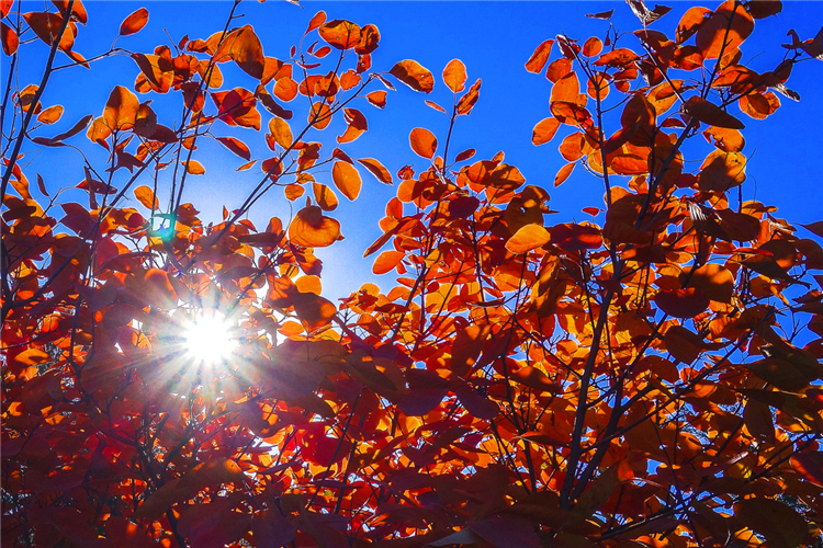 二、最早变红。这里是北京市秋天最早能看到红叶的景区,比市区红叶观赏期要早半个月。这是因为公园海拔高(平均750米)、森林茂盛和古长城隔挡作用,使得公园气温比市区低5℃,促使红叶更早变色。每年9月26日到11月5日间,是公园红叶观赏期,其间,10月中旬达到最佳效果。这使首都红叶观赏期延长半个月。