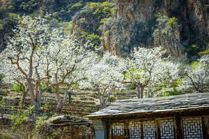 千亩梯田梨花数百棵百年老梨树沿山生长