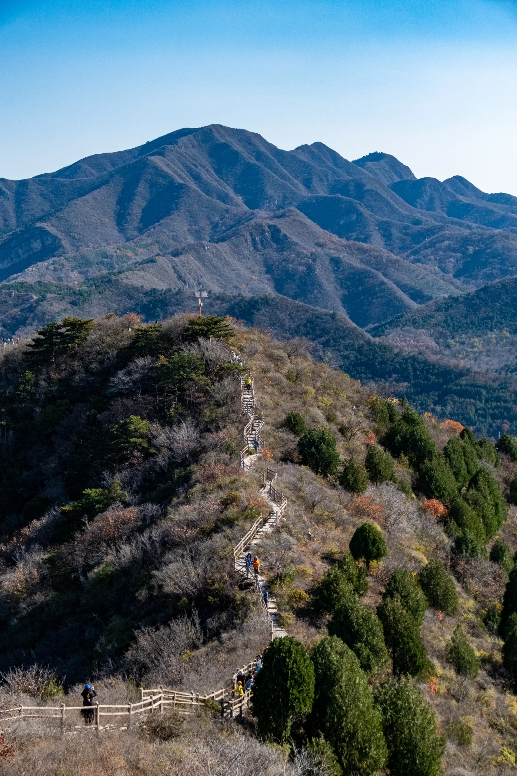 该条线路比较简单,老少皆宜,特别适合新人体验。前一小段是干净平坦的石板路,然后经过不高的登山石阶,半小时便能到达山脊,大多时间我们都是行走在山脊线上,脚下就是金海湖,视野开阔,景色壮观绝美,后半段我们沿着水边走的蜿蜒石子路和沙滩行走,最后穿越小树林返回栈道下山。