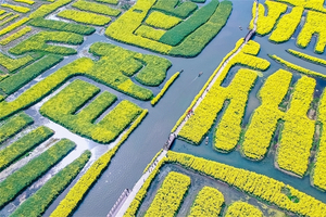 千百垛田漂浮于水中,云蒸霞蔚,煞是壮观,乘一艘木船优雅地穿行于花垛田错综复杂的水道之中,很有意境美。