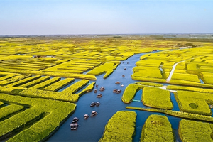 兴化千垛油菜花海全球重要农业文化遗产,江苏省四星级乡村旅游点,被称为世界最美油菜花海。以“垛田”特色地貌享誉全球,块块隔垛宛如漂浮于水面岛屿,有“万岛之国”的美誉。