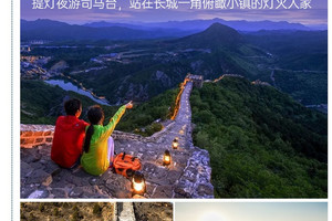 ★提灯夜游司马台★: 提一盏灯脚踏长城,搭乘全封闭式缆车,登上唯一夜间开放的长城,俯瞰灯火倾城的小镇,司马台长城是我国目前唯一开放夜游的长城,牵着爱人的手,提一盏青灯在群山万壑之巅,一起拥抱晚霞与星空,俯瞰小镇的华灯初上与万家灯火。(首家夜长城【司马台长城】“不到长城非好汉”)