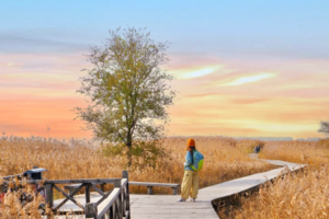 这里是鸟儿的天堂。春天迁徙归来的候鸟像天鹅、鸿雁等雁鸭类大概有30多种;白鹤、灰鹤等禽类也有20、30余种。在公园游览的过程中,可以看到这个野鸭在芦水草丛当中穿行,还有鸥类、鸟类在空中翱翔的场景。同时,还可以听到各种鸟类的鸣叫低吟。在这里游玩,让我们能享受到视觉和听觉的双重美好体验。