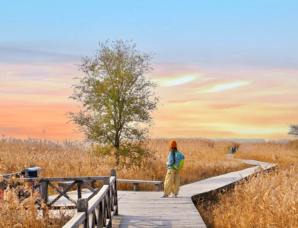 下午|到达野鸭湖湿地公园后,自由活动。徒步环湖全程约6公里,不紧不慢时间正好;有湖中木栈道,穿梭在大片的芦苇荡中央;也有林荫小路,随时休憩;景区内有望湖楼,可以俯瞰湖景、芦苇荡及远处的康西草原。