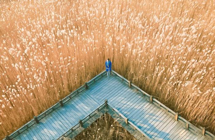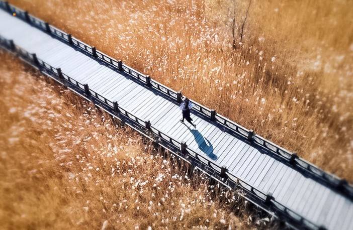 最经典的拍照地就是望湖楼了,不需要航拍器,登上望湖楼,就可以拍出各种大片!这里也是鸟瞰湿地的最佳观景处。