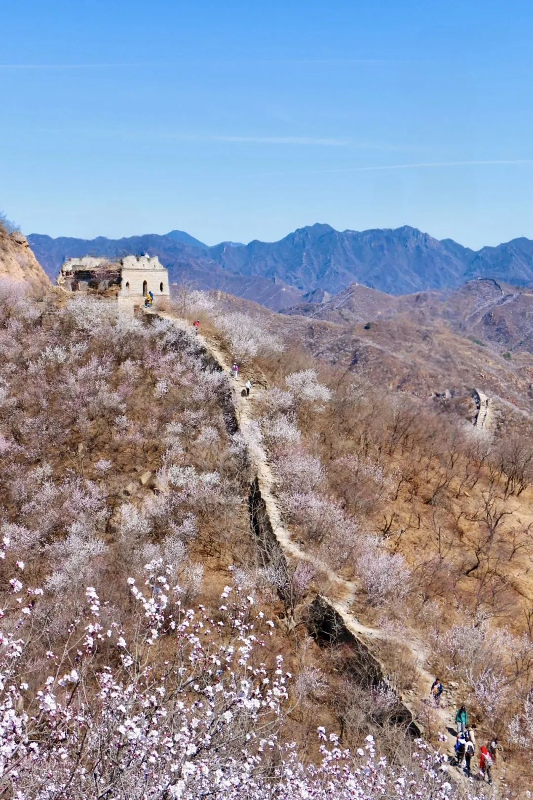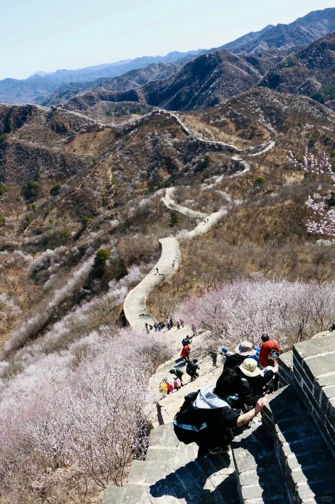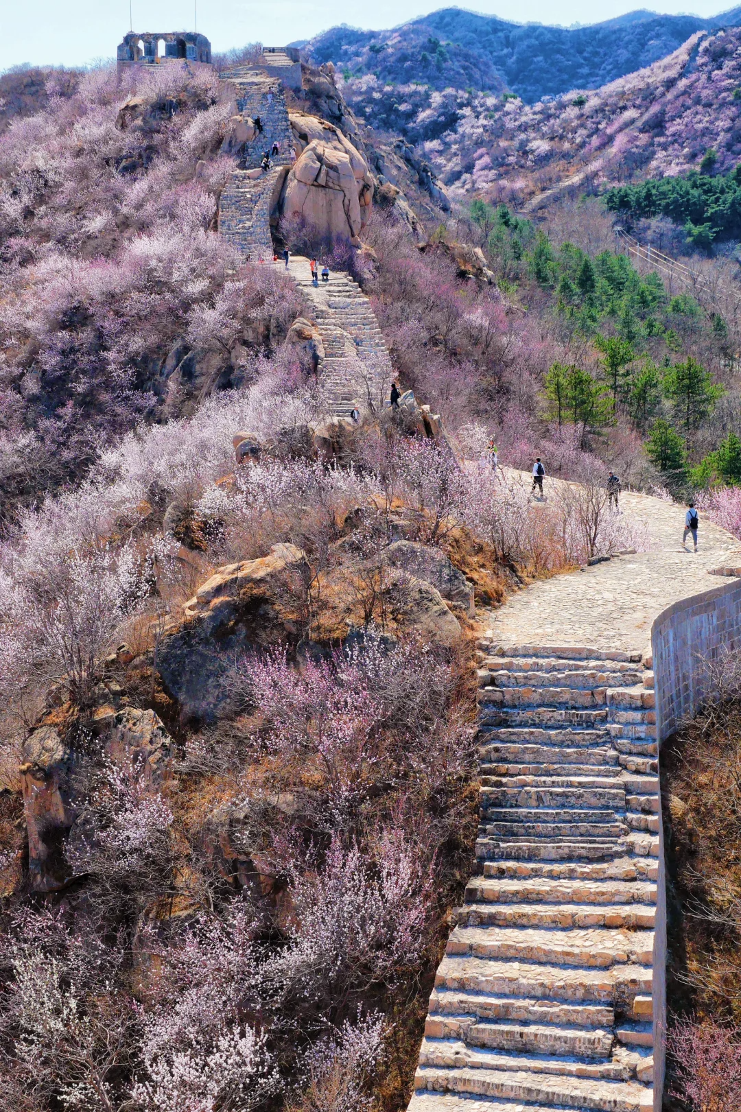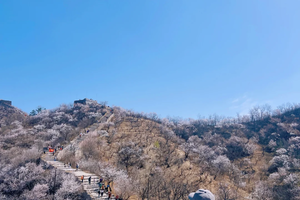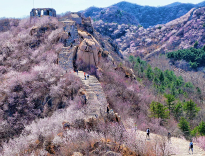 春天满山遍野山桃花还可以攀登绵延起伏野长城