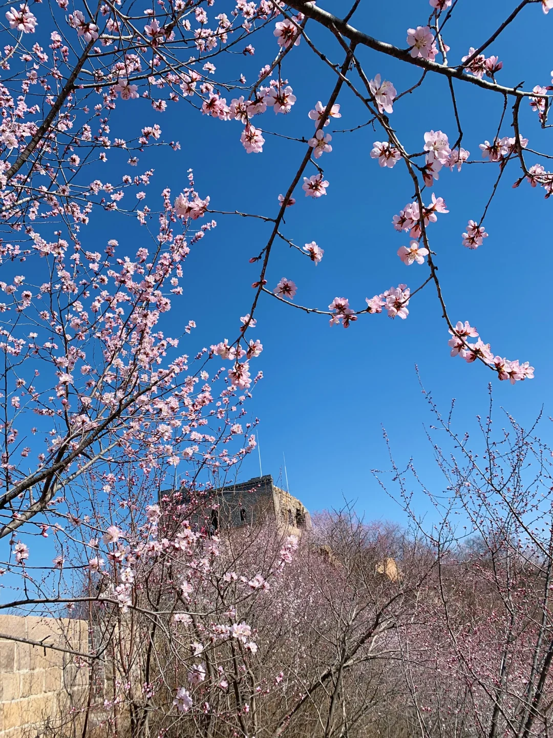 龙泉峪长城作为北京赏花的宝藏地,简直就是历史韵味与自然美景完美融合。 3月登上龙泉峪长城,漫山遍野的山桃花热烈绽放,那景象,就像被大自然打翻了调色盘,美到窒息,真真切切感受到万物复苏的震撼。
