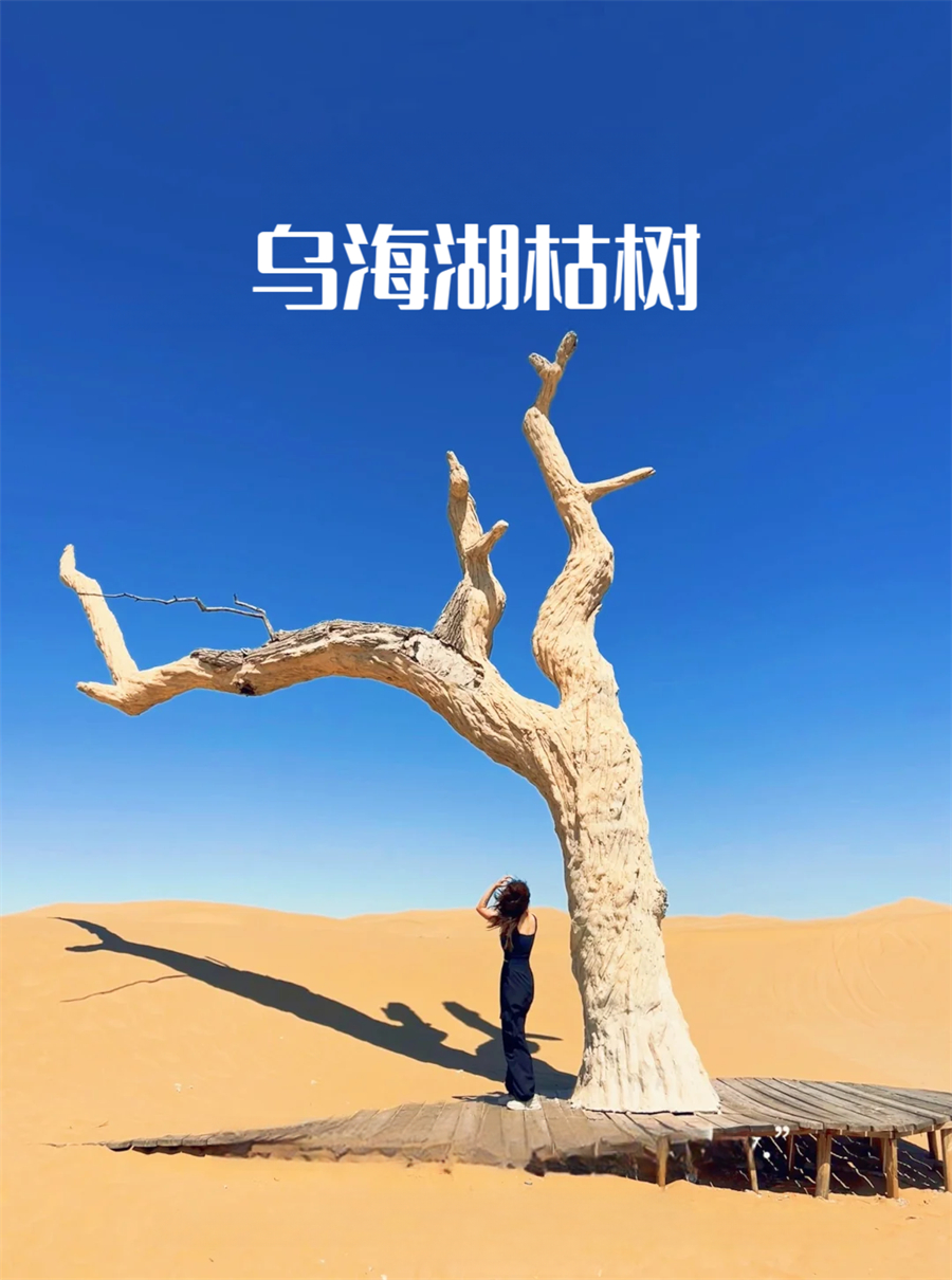 早餐后,集合前往【乌海湖】游览,打卡乌海湖、网红枯树、网红沙漠公路、乌海沙漠!