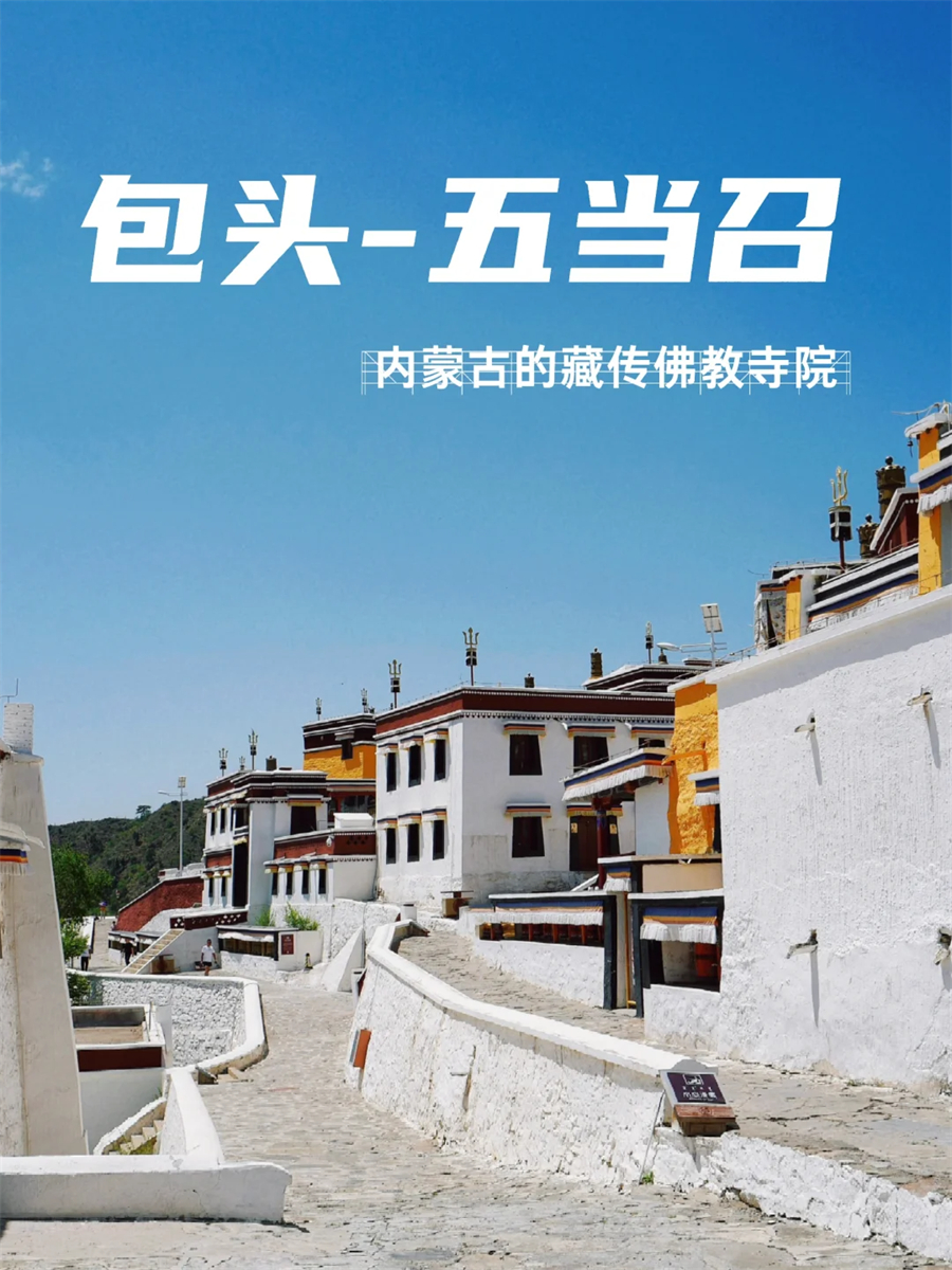 下午抵达蒙西“小布达拉宫”【五当召】。包头五当召,大青山深处的“内蒙布达拉宫”始建于清朝康熙年间的五当召位于内蒙古包头东北部的大青山深处,依地势面南而建,白色的藏式建筑群颇为宏伟,有“内蒙的布达拉宫”之称。白色藏式建筑群,纯白墙壁+鎏金屋顶,随手一拍就是大片!阳光洒下时仿佛在发光,穿红色/藏蓝色衣服超出片,有很多小姐姐穿着藏式服装在这儿打卡。