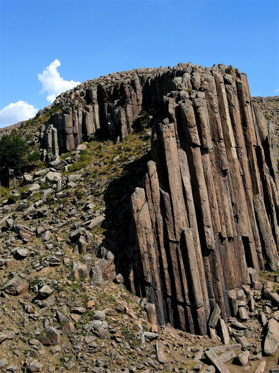 早餐后集合前往【古力脑包】游览。在内蒙古乌兰察布市察哈尔右翼前旗的广袤草原上,藏着一处震撼人心的地质奇观——**古力脑包火山地质遗迹**。这里被誉为“草原版巨人之路”,触摸地球亿万年演化的密码,地球亿万年演化的密码以独特的玄武岩柱状节理构造,向世人展示着地球亿万年前的炽热与冷却、喷发与沉淀的壮丽史诗。