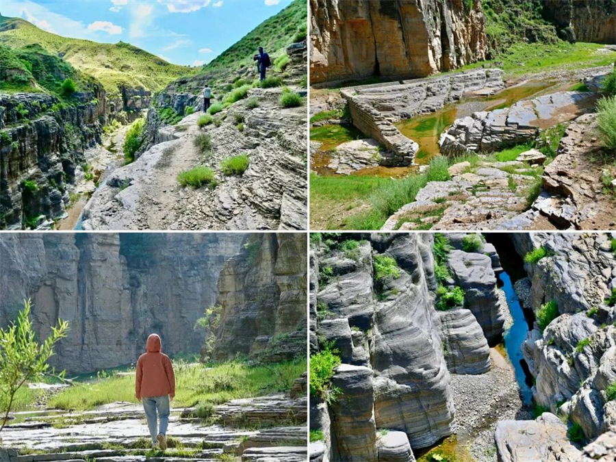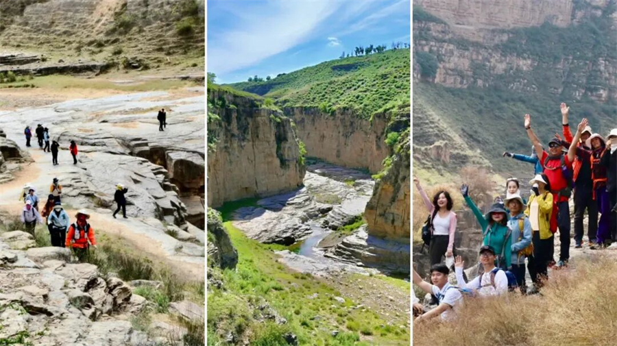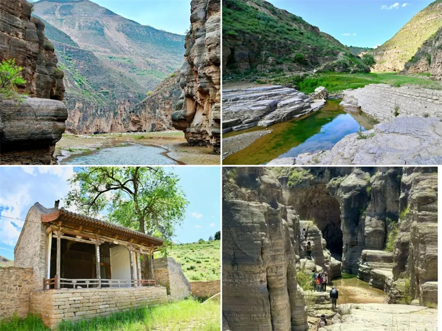 早起后我们前往杨家川峡谷【滑石涧-老牛湾】徒步,杨家川峡谷发源于平鲁县,是黄河的一级支流。峡谷的成因是地表抬升,水流沿构造节理或断层发生快速下切。雨季时,雨水从峭壁直泻而下,还会形成大小不一的瀑布。沿峡谷北侧向西走,会经过一座小庙“伏龙寺”,再走几百米,就要下到峡谷底过河,此处有一座废弃的拦水坝。过河后,换到沿峡谷南侧继续走,途中会经过几个山谷,一路风光有峡谷,长城,烽火台,古村,古庙,木栈道,需爬升300米到老牛湾景区。傍晚时分抵达终点老牛湾景区,可赶上日落晚霞。