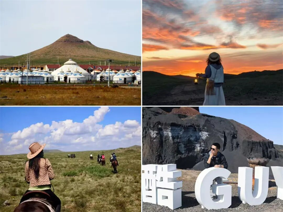 早餐过后集合前往乌兰哈达火山。【乌兰哈达火山】美丽的乌兰哈达火山在草原上矗立了万年,被《美国国家地理》杂志誉为“中国最美火山群”。我们爬上火山口,去一探究竟!这里有三座中心式喷发的炼丹炉火山,我们主要参观的地方是4号火山(黑脑包+火山博物馆)、5号火山(中炼丹炉)、6号火山(南炼丹炉),同时我们还能远观7号火山(北尖山)、8号火山(南尖山)。在火山的侧面,我们还能看到当年火山喷发后留下的凝结的岩浆,和碳的颜色相似,但是由于有硫磺等物质,表面会泛着七彩的颜色,非常好看。这里的风也非常大,大家要注意防风防晒!